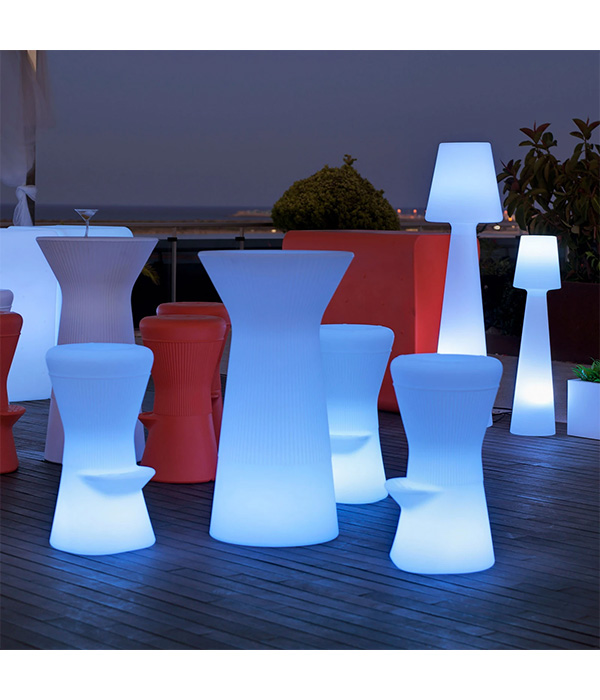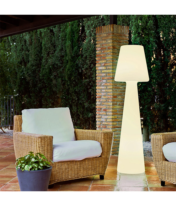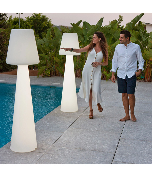 Ikona wśród lamp dekoracyjnych do wnętrz i na zewnątrz oraz lampa, którą można stosować wszędzie dzięki zasilaniu bateryjnemu niezależnemu od sieci elektrycznej - to właśnie lampa podłogowa LED Luna 165 hiszpańskiego producenta. Został wyprodukowany w formie dekoracyjnej z polietylenu - bardzo wytrzymałego tworzywa sztucznego, które jest odporne na działanie promieniowania uv oraz wytrzymuje skrajne temperatury. Lampa podłogowa Luna 165 jest wyposażona w diody LED RGB, jak również w białe diody LED i jest dostarczana z pilotem. Dzięki temu oświetlenie jest nie tylko bardzo uniwersalne, ale i wygodne. Niezależnie od tego, czy wybierane jest kolorowe oświetlenie z szerokiego spektrum barw, czy też białe światło o barwie światła dziennego, jasność można płynnie regulować za pomocą pilota.